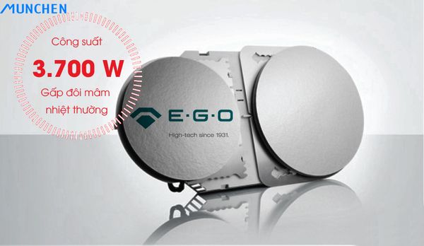 - Mâm nhiệt E.G.O được thiết kế siêu bền, có khả năng phát sáng siêu nhanh, với mức gia nhiệt chỉ sau 3-5 giây khi có kết nối với nguồn điện. Việc thực hiện đun sôi1 lít nước của bếp gas là 4 phút 24 giây còn bếp EGO hilight chỉ mất 2 phút 58 giây, tức là chỉ tiêu thụ 0,1 KW điện. Mâm nhiệt E.G.O chịu được hiệu suất nguồn điện lớn mà không bị đứt dây hay han gỉ, Nhiệt phân phối nhiệt lượng đồng đều.