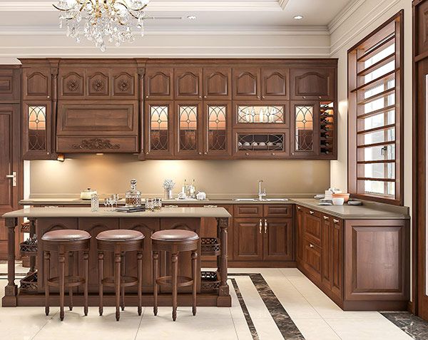 Tủ bếp tân cổ điển gỗ óc chó đẹp