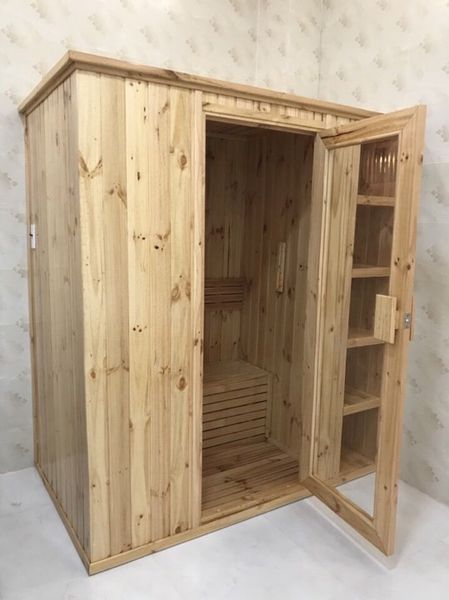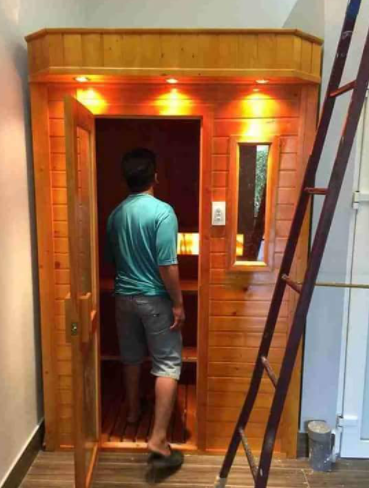 Đối với phòng xông hơi khô, để giảm thiểu tối đa mọi chi phí, những mặt nào giáp tường, chúng tôi chỉ đóng 1 lớp gỗ, mặt nào không giáp tường thì đóng 2 lớp gỗ để đảm bảo bên ngoài hay bên trong nhìn cũng đều có thẩm mĩ. Bên cạnh đó, thiết kế phòng xông hơi khô tại nhà, thợ kĩ thuật sẽ đến đo và thiết kế theo không gian, ý thích của gia đình, tiện lợi hơn rất nhiều so với những phòng xông hơi nhập khẩu đóng sẵn.