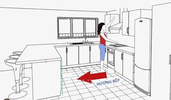 -Tuyệt đối tránh hướng bếp ngược hướng với hướng nhà.