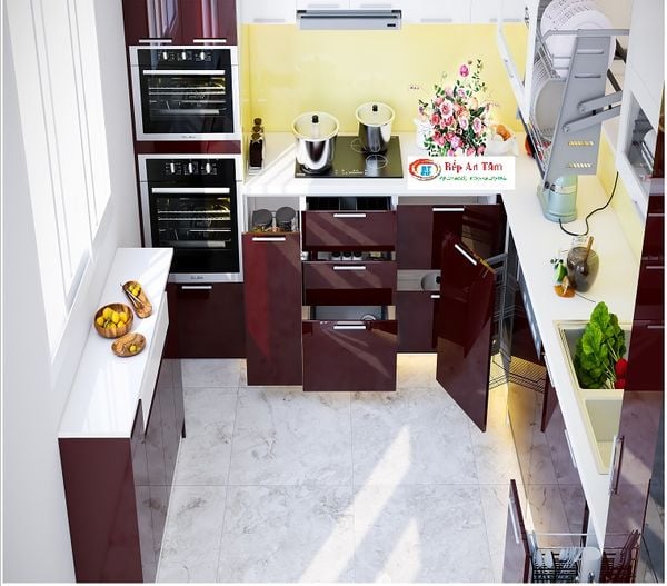 Bếp nên tựa vào tường , sau lưng tủ bếp tránh để khoảng trống như vậy tránh tình trạng cư trú chuột , côn trùng mất vệ sinh.