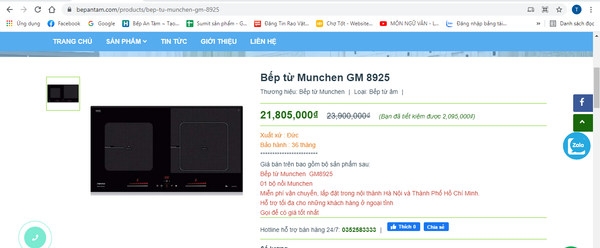 Bếp An Tâm công khai các sản phẩm bếp từ trên Website với đầy đủ hình ảnh , thông số kỹ thuật và giá niêm yết sản phẩm để quý khách hàng dễ dàng tham khảo và lựa chọn.