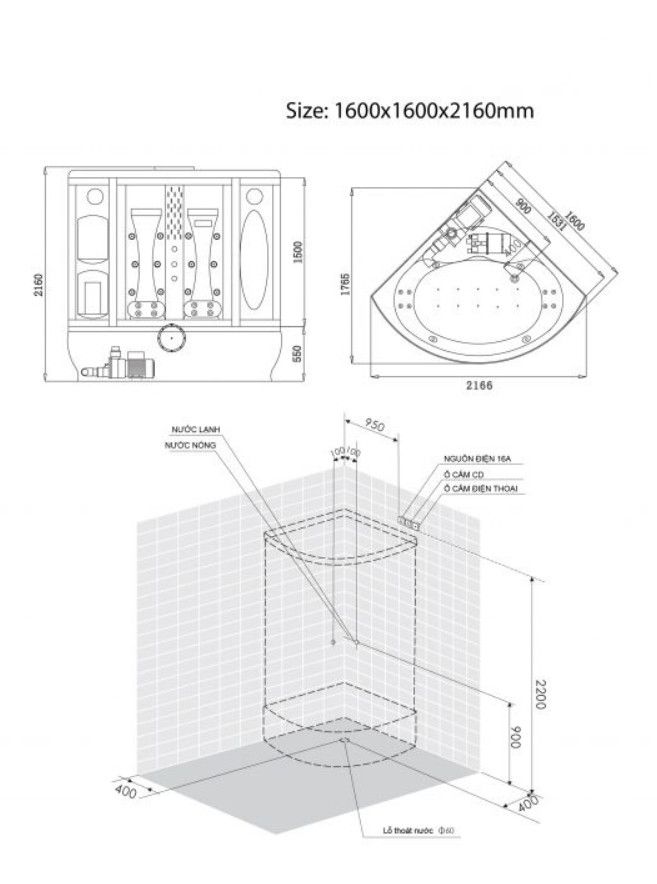 Có hệ thống bảng điều khiển kỹ thuật số, FM radio, Loa, Kệ đựng đồ, Quạt thông gió, Gương soi, Thanh treo khăn tắm, Hệ thống thu nước ở đáy.